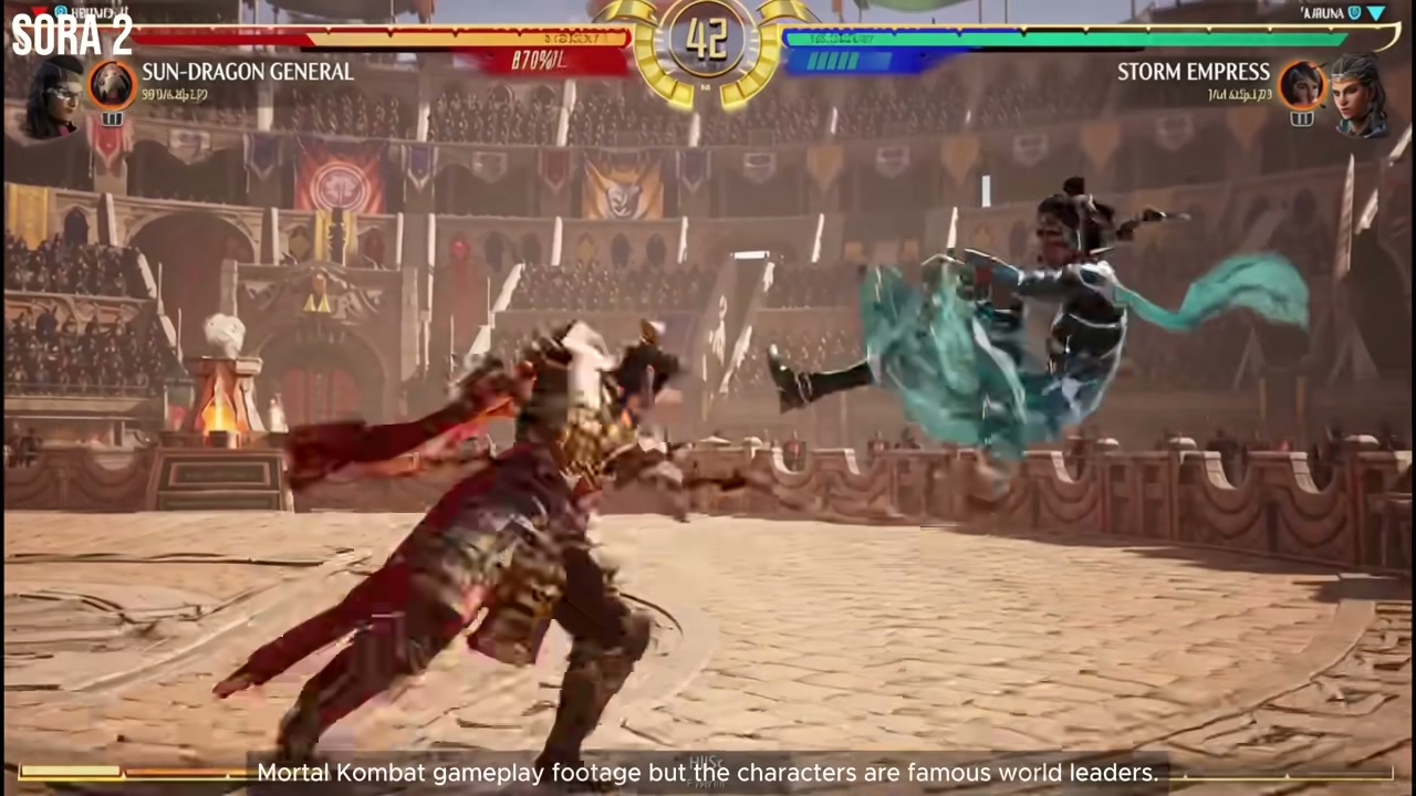 - Sora 2 的輸出非常逼真,生成了完整的格鬥遊戲介面